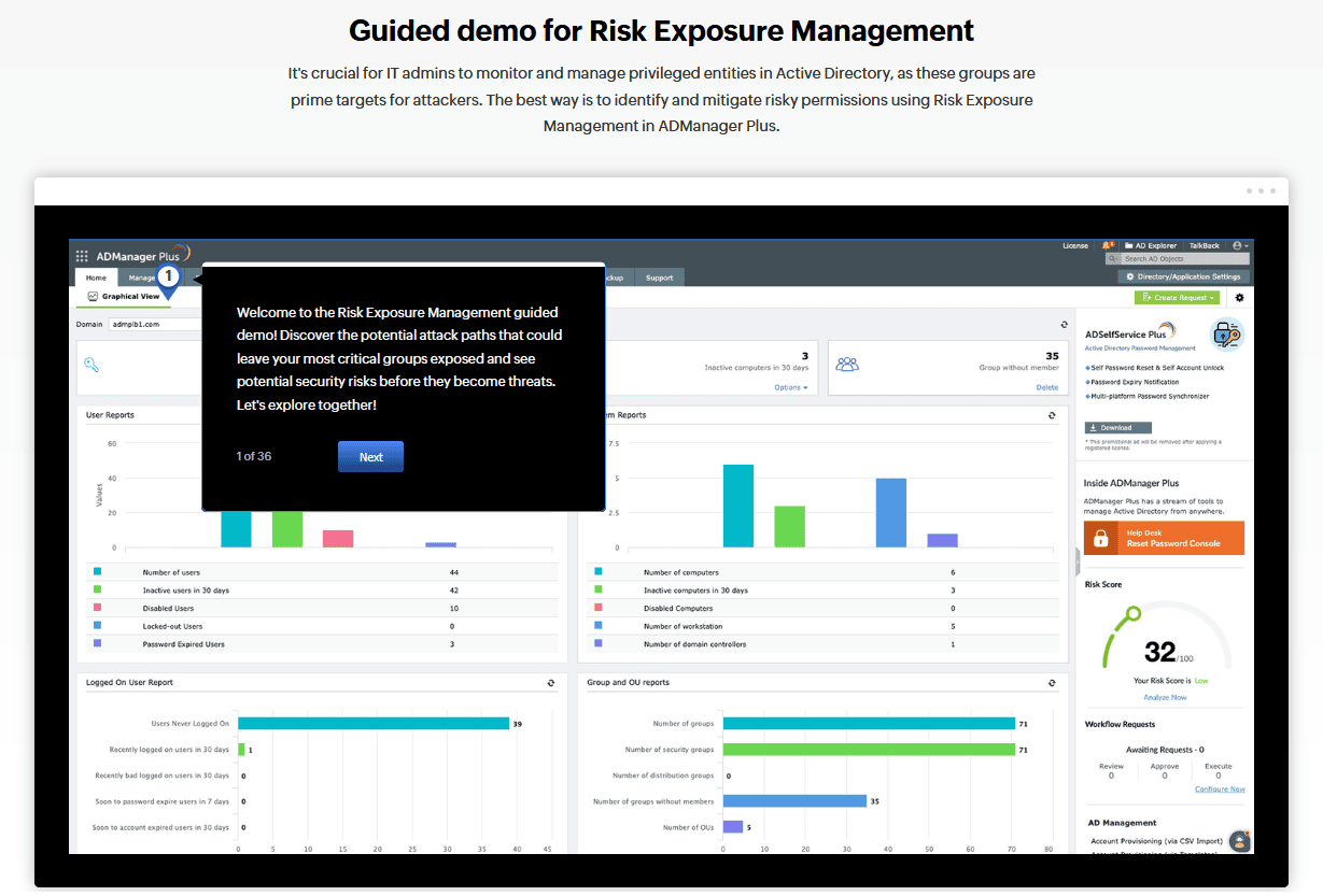 We're excited to announce a new guided demo for ManageEngine ADManager Plus, focusing on Risk Exposure Management - now available in build 8020 as part of our GRC add-on. As previously shared with partners, this feature proactively identifies and visualizes potential attack paths within Active Directory environments.